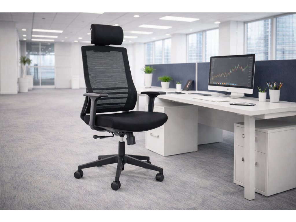 Kancelářská židle Claudio je vhodná pro všechny administrativní činnosti kdy doba sezení přesahuje 8 hodin. Židle je opatřená síťovinou na opěradle pro příjemné sezení. Synchronní mechanika zajišťuje ergonomické houpání kdy se sedák naklání méně než opěradlo, takže netlačí do stehen a zůstanete nohama pevně na zemi. Nastavení výšky židle zajišťuje plynový píst, který ovládáte pomocí páčky umístěné pod sedákem. Houpání lze zaaretovat ve třech polohách. Sedák je čalouněný látkou s dlouhou životností. Kolečka jsou určena pro všechny typy podlah.