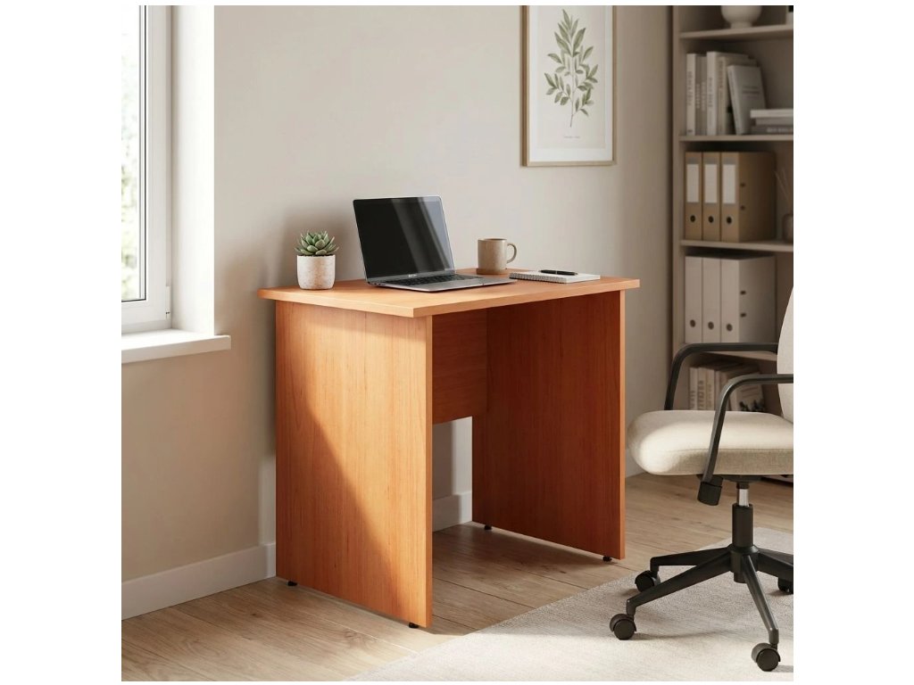 Kvalitní kancelářský stůl ze série Impress s velikostí pracovní desky 80x60 cm. Horní deska je vyrobena z laminované dřevotřísky o síle 22 mm, ostatní díly potom z desek LDT o síle 16 a 22 mm. Součástí stolu jsou rektifikační nohy, které umožnují upravit výšku stolu až o 10 mm. Stoly jsou dodávány v různých barevných provedeních.