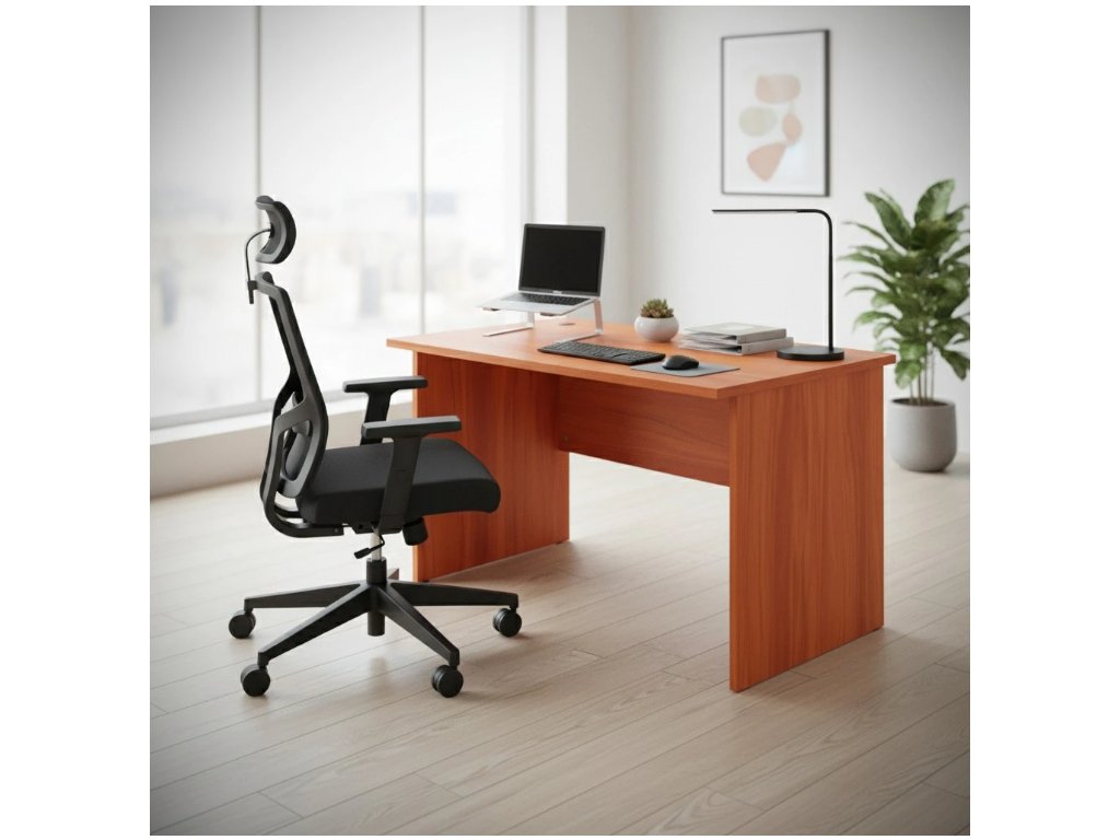 Kancelářský stůl SimpleOffice s deskou 120 × 80 cm je skvělým kandidátem na každé administrativní pracoviště. Deska stolu je ve výšce 76 cm, což Vám zajistí optimální podmínky pro práci u počítače. Horní deska i podnož jsou z laminované dřevotřísky o síle 25 mm s ochrannou povrchovou úpravou a 2mm ABS hranou, takže stůl odolá běžnému opotřebení a při rovnoměrném zatížení unese až 80 kg. Čelní panel má tloušťku 16 mm. Stoly jsou dodávány v různých barevných provedeních.
