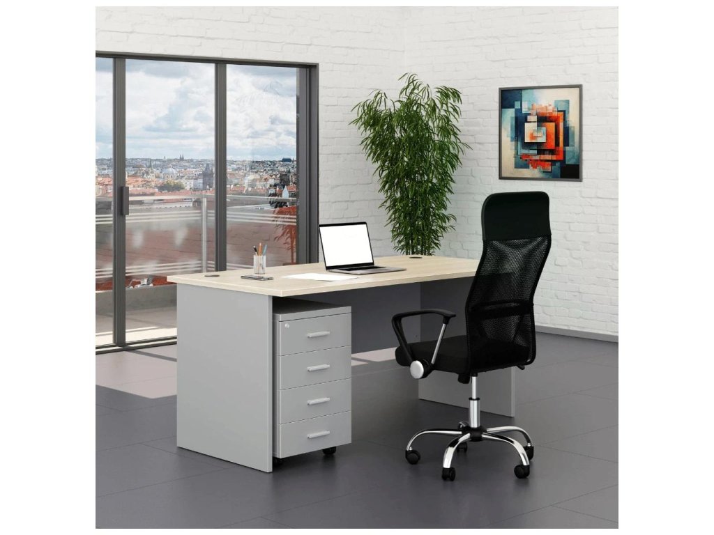 Kancelářský stůl SimpleOffice s deskou 160 × 80 cm je skvělým kandidátem na každé administrativní pracoviště. Deska stolu je ve výšce 76 cm, což Vám zajistí optimální podmínky pro práci u počítače. Horní deska i podnož jsou z laminované dřevotřísky o síle 25 mm s ochrannou povrchovou úpravou a 2mm ABS hranou, takže stůl odolá běžnému opotřebení a při rovnoměrném zatížení unese až 80 kg. Čelní panel má tloušťku 16 mm. Stoly jsou dodávány v různých barevných provedeních.
