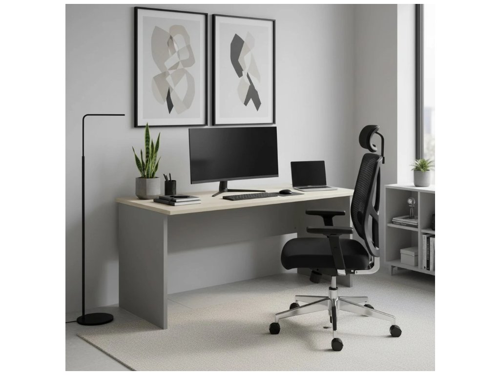 Kancelářský stůl SimpleOffice s deskou 180 × 80 cm je skvělým kandidátem na každé administrativní pracoviště. Deska stolu je ve výšce 76 cm, což Vám zajistí optimální podmínky pro práci u počítače. Horní deska i podnož jsou z laminované dřevotřísky o síle 25 mm s ochrannou povrchovou úpravou a 2mm ABS hranou, takže stůl odolá běžnému opotřebení a při rovnoměrném zatížení unese až 80 kg. Čelní panel má tloušťku 16 mm. Stoly jsou dodávány v různých barevných provedeních.