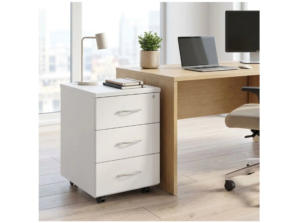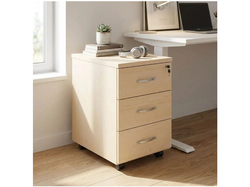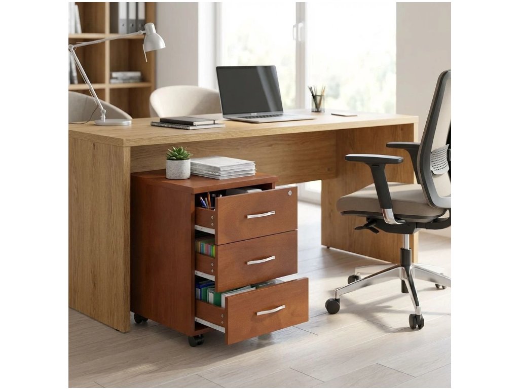 Kvalitní mobilní kontejner ze série nábytku Impress. Horní deska je vyrobena z laminované dřevotřísky o síle 22 mm, ostatní díly z desek LDT o síle 16 mm. Kontejner má centrální zamykání, kovové úchyty a kolečka, pomocí kterých jej můžete snadno a jednoduše přemístit na potřebné místo. Provedení v různých barevných dezénech.