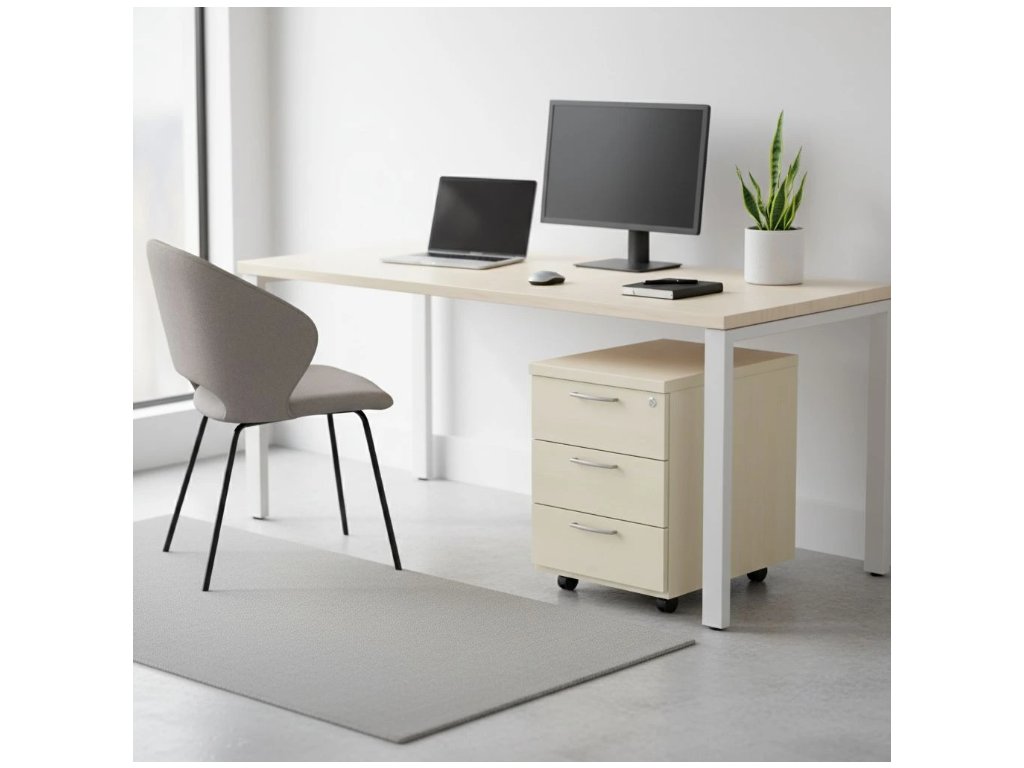 Kvalitní kontejner ze série Visio. Horní deska je vyrobena z laminované dřevotřísky o síle 28 mm, ostatní díly z desek LDT o síle 18 mm. Kontejner má centrální zamykání, kovové úchyty a na spodní straně kolečka. Provedení v různých barevných dezénech.