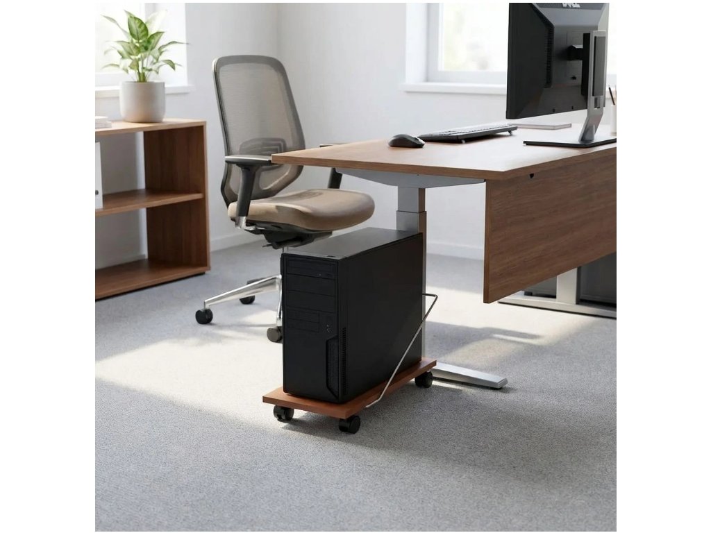 Stojan na PC je skvělým doplňkem kancelářských stolů Impress, který vám pomůže lépe zorganizovat plochu pod stolem a navíc svým vzhledem jednoduše zapadne. Stojan nabízí prostor 26 x 50 cm pro umístění vašeho počítače. Výhodou stojanu je snadná manipulace, protože je vybaven kolečky a můžete si jej tak pohodlně přesunout. Síla použitých desek je 16 mm.