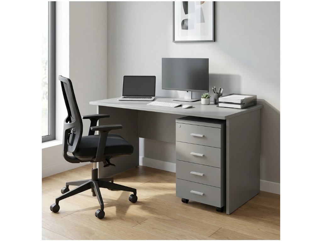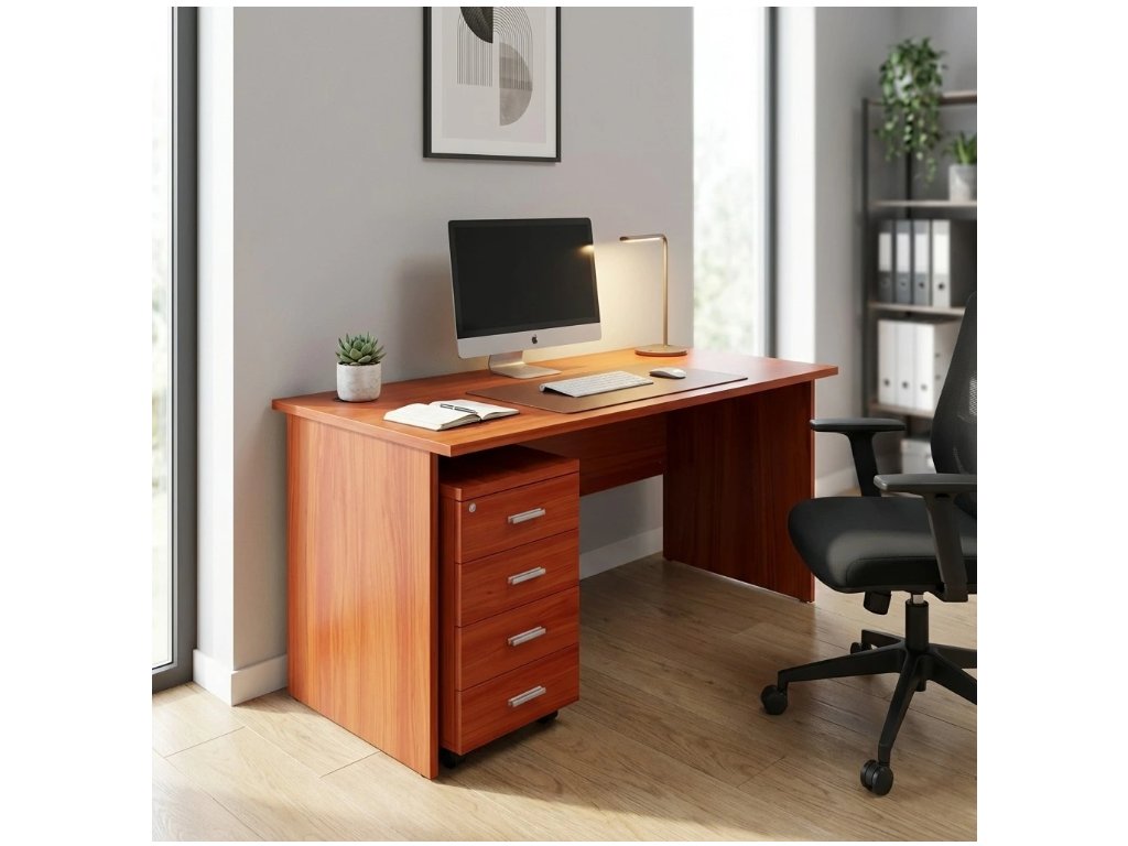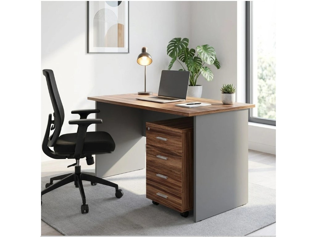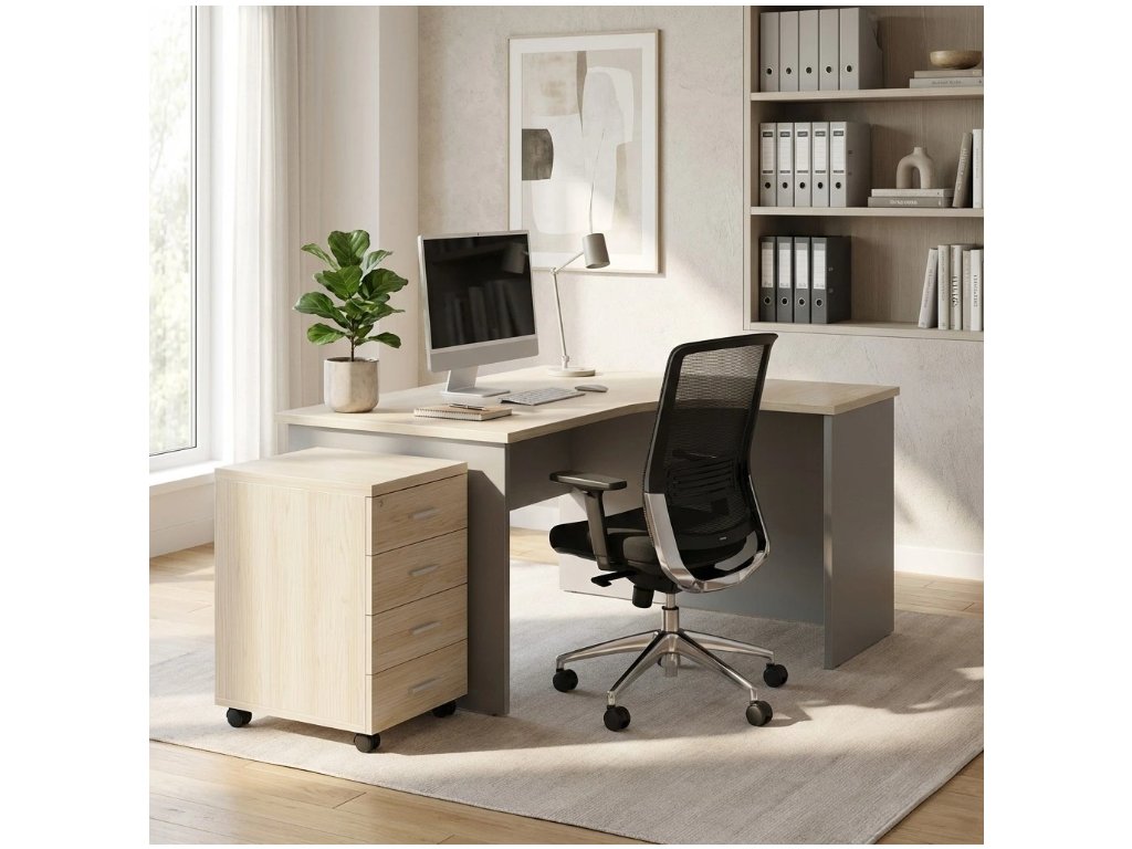Pojízdný kancelářský kontejner SimpleOffice se 4 zásuvkami je díky svému praktickému zpracování a příznivé ceně skvělým kandidátem na administrativní pracoviště. Každá zásuvka má vnitřní rozměr 31,2 × 37 × 12,8 cm (šířka × hloubka × výška), bez problému si sem tedy uložíte dokumenty ve formátu A4, drobnou techniku nebo osobní předměty. Kontejner je vybaven centrálním zámykáním. Zásuvky mají hliníkové úchytky a pojezdy a při rovnoměrném zatížení si poradí se zátěží až 15 kg. Pohyb zajištují kolečka s možností zabrzdění. Konstrukce je vyrobena z laminované dřevotřísky o síle 25 mm (horní deska) a 16 mm (ostatní desky) s ochrannou povrchovou úpravou a 2mm ABS hranou.