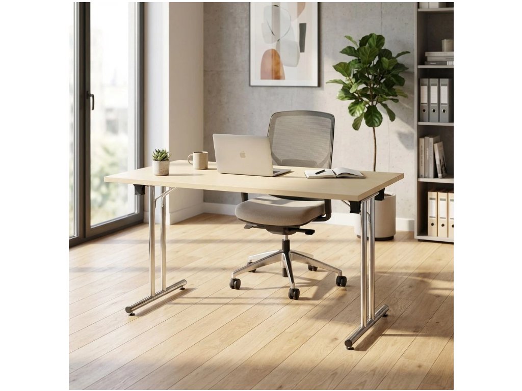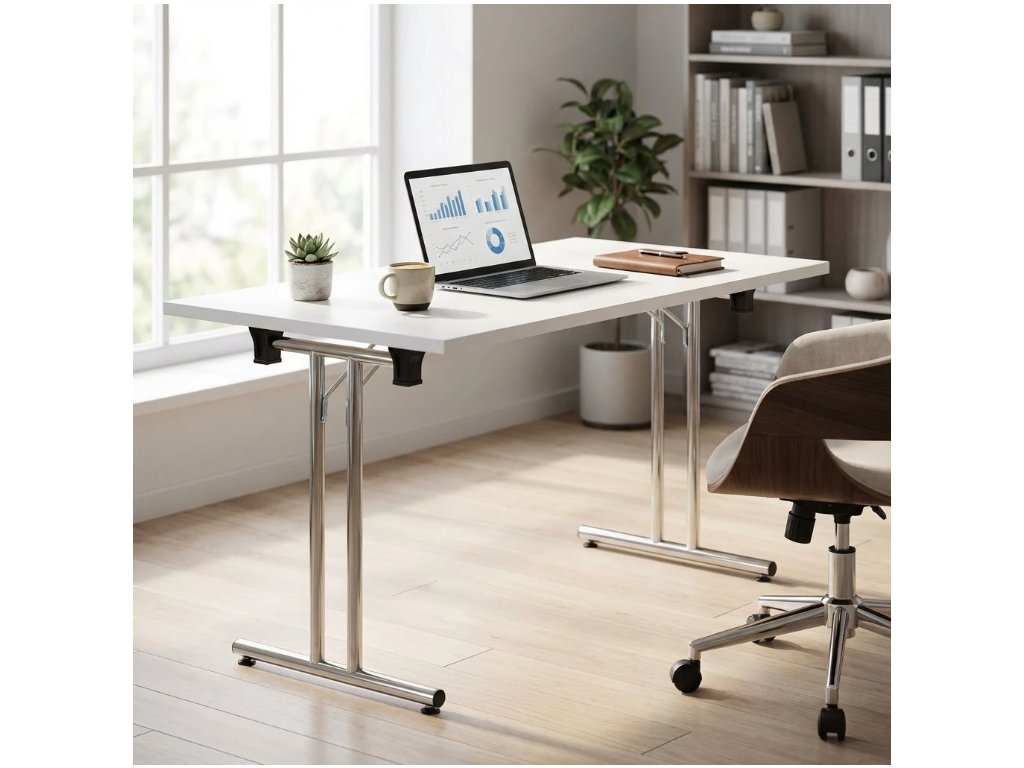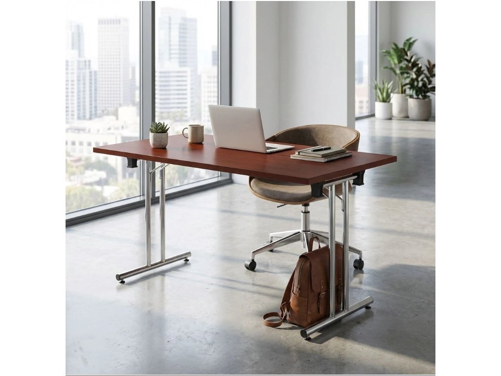 Kvalitní skládací stůl ze série Impress s velikostí pracovní desky 140x80 cm. Horní deska je vyrobena z laminované dřevotřísky o síle 22 mm. Maximální nosnost při rovnoměrném zatížení je 80 kg. Velkou výhodou skládacího stolu Impress je maximální úspora místa při skladování. Stoly jsou stohovatelné a umožňují tak uložení několika kusů na sebe. Jsou dodávány v různých barevných provedeních.