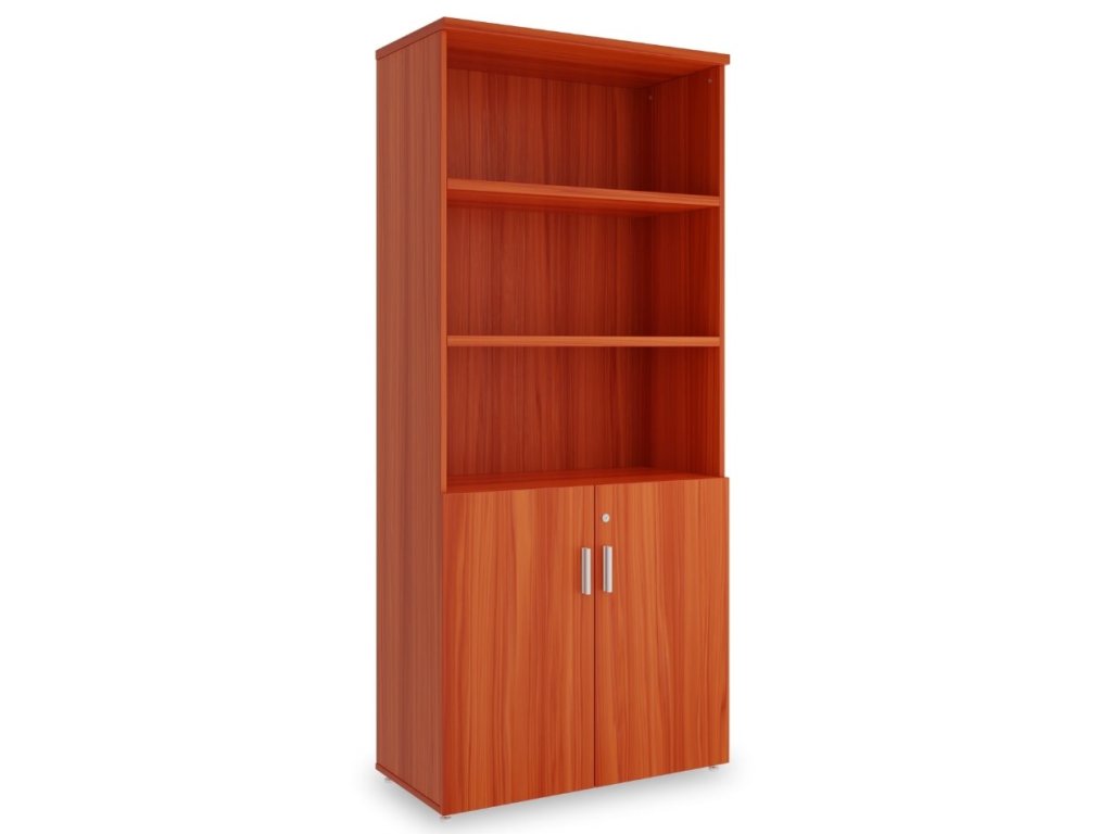 Vysoká kancelářská skříň SimpleOffice s dveřmi je díky svému praktickému zpracování a příznivé ceně skvělým kandidátem na administrativní pracoviště. Skříň má 5 polic, které při rovnoměrném zatížení unesou až 30 kg. Konstrukce je z laminované dřevotřísky o síle 25 mm (horní deska a police) a 16 mm (ostatní desky) s ochrannou povrchovou úpravou a 2mm ABS hranou, takže skříň odolá běžnému opotřebení.