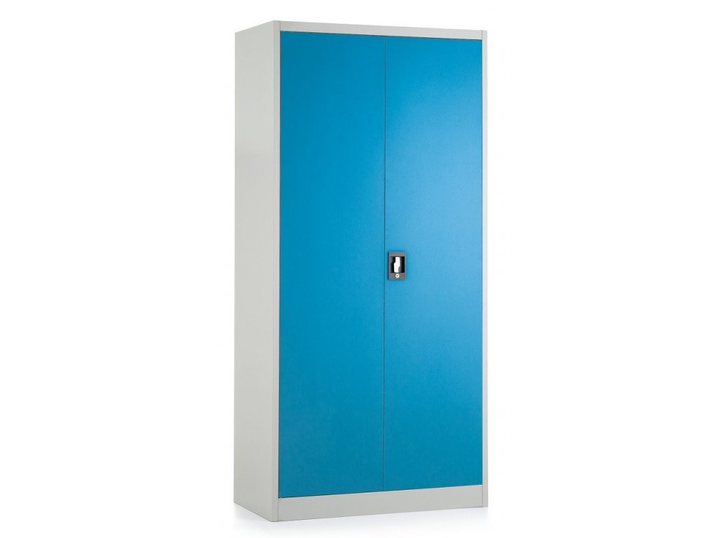 Kovová šatní skříň nabízí spoustu úložného prostoru. Kromě uložení oblečení ji můžete využít také pro archivaci nejrůznějších dokumentů ve formě složek nebo šanonů. Na pravé straně jsou umístěny 3 police s nosností až 40 kg, v horní části je umístěna široká police a v levé části věšák. Konstrukce je vyrobena z pevného ocelového plechu v modrém odstínu RAL 5012. Skříň má zamykání v podobě cylindrického zámku.