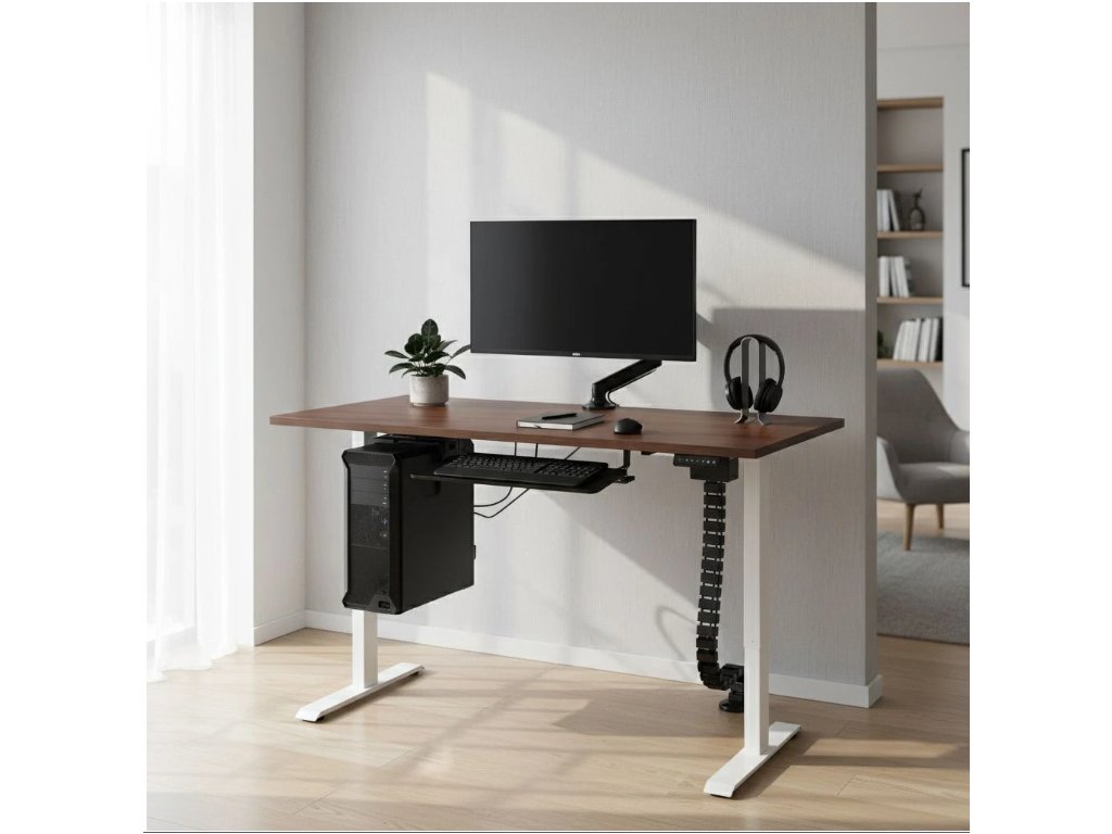 Kvalitní výškově nastavitelný stůl řady OfficeTech C s velikostí pracovní desky 120 x 80 cm využijete v kanceláři, pracovně nebo třeba také v ordinaci. Výška desky stolu lze nastavit a můžete si tak sami přizpůsobit a vybrat si, zda vám vyhovuje pracovat vsedě nebo vestoje. Pravidelné střídání těchto dvou pozic přispívá ke správné cirkulaci krve a snižujete riziko vzniku obezity. Antikolizní systém zabraňuje nechťené nehodě. Stůl OfficeTech C se skládá z robustní bílé kovové podnože a stolové desky o síle 25 mm. U této desky si můžete vybrat hned z několika odstínů. Pomocí ovládacího panelu se zvolí ideální výška desky tak, aby se Vám příjemně pracovalo. Pomocí šipek nahoru a dolů se mění pozice stolové desky. Stůl je vybavený dvěma motory, které zajistí rychlost zdvihu desky 32 mm/s.