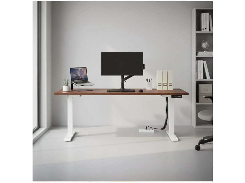 Kvalitní výškově nastavitelný stůl řady OfficeTech C s velikostí pracovní desky 180 x 80 cm využijete v kanceláři, pracovně nebo třeba také v ordinaci. Výška desky stolu lze nastavit a můžete si tak sami přizpůsobit a vybrat si, zda vám vyhovuje pracovat vsedě nebo vestoje. Pravidelné střídání těchto dvou pozic přispívá ke správné cirkulaci krve a snižujete riziko vzniku obezity. Antikolizní systém zabraňuje nechťené nehodě. Stůl OfficeTech C se skládá z robustní bílé kovové podnože a stolové desky o síle 25 mm. U této desky si můžete vybrat hned z několika odstínů. Pomocí ovládacího panelu se zvolí ideální výška desky tak, aby se Vám příjemně pracovalo. Pomocí šipek nahoru a dolů se mění pozice stolové desky. Stůl je vybavený dvěma motory, které zajistí rychlost zdvihu desky 32 mm/s.