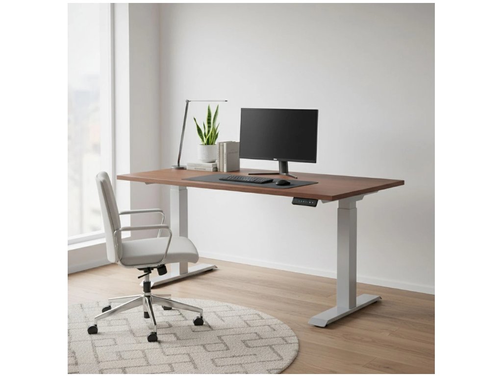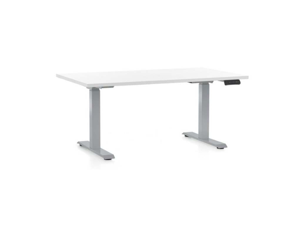 Kvalitní výškově nastavitelný stůl řady OfficeTech D s velikostí pracovní desky 140 x 80 cm využijete v kanceláři, pracovně nebo třeba také v ordinaci. Výška desky stolu lze nastavit a můžete si tak sami přizpůsobit a vybrat si, zda vám vyhovuje pracovat vsedě nebo vestoje. Pravidelné střídání těchto dvou pozic přispívá ke správné cirkulaci krve a snižujete riziko vzniku obezity. Antikolizní systém zabraňuje nechťené nehodě. Stůl OfficeTech C se skládá z robustní šedé kovové podnože a stolové desky o síle 25 mm. U této desky si můžete vybrat hned z několika odstínů. Pomocí ovládacího panelu se zvolí ideální výška desky tak, aby se Vám příjemně pracovalo. Pomocí šipek nahoru a dolů se mění pozice stolové desky. Stůl je vybavený dvěma motory, které zajistí rychlost zdvihu desky 38 mm/s.